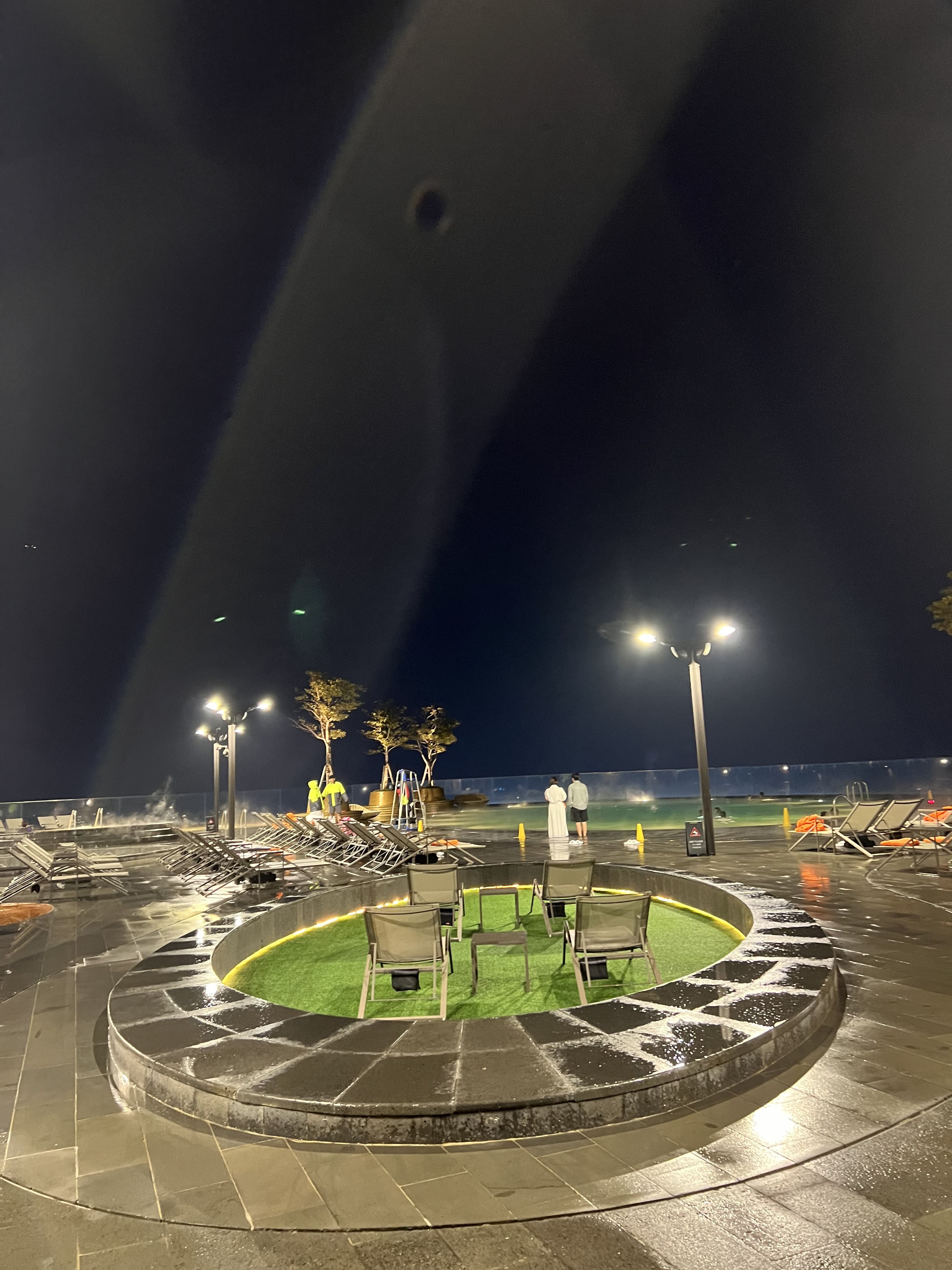 시간이 조금 생겨 들른 피트니스 센터는 기대 이상이었습니다. 최신 기기들이 깨끗하게 정돈돼 있었고, 헬스장 내부도 넓고 쾌적해서 운동에 집중하기 좋았어요. 수영장은 야외에 마련되어 있었는데, 아직은 날씨가 쌀쌀해서 수영은 하지 않고 풍경만 감상했는데도 충분히 만족스러웠습니다.