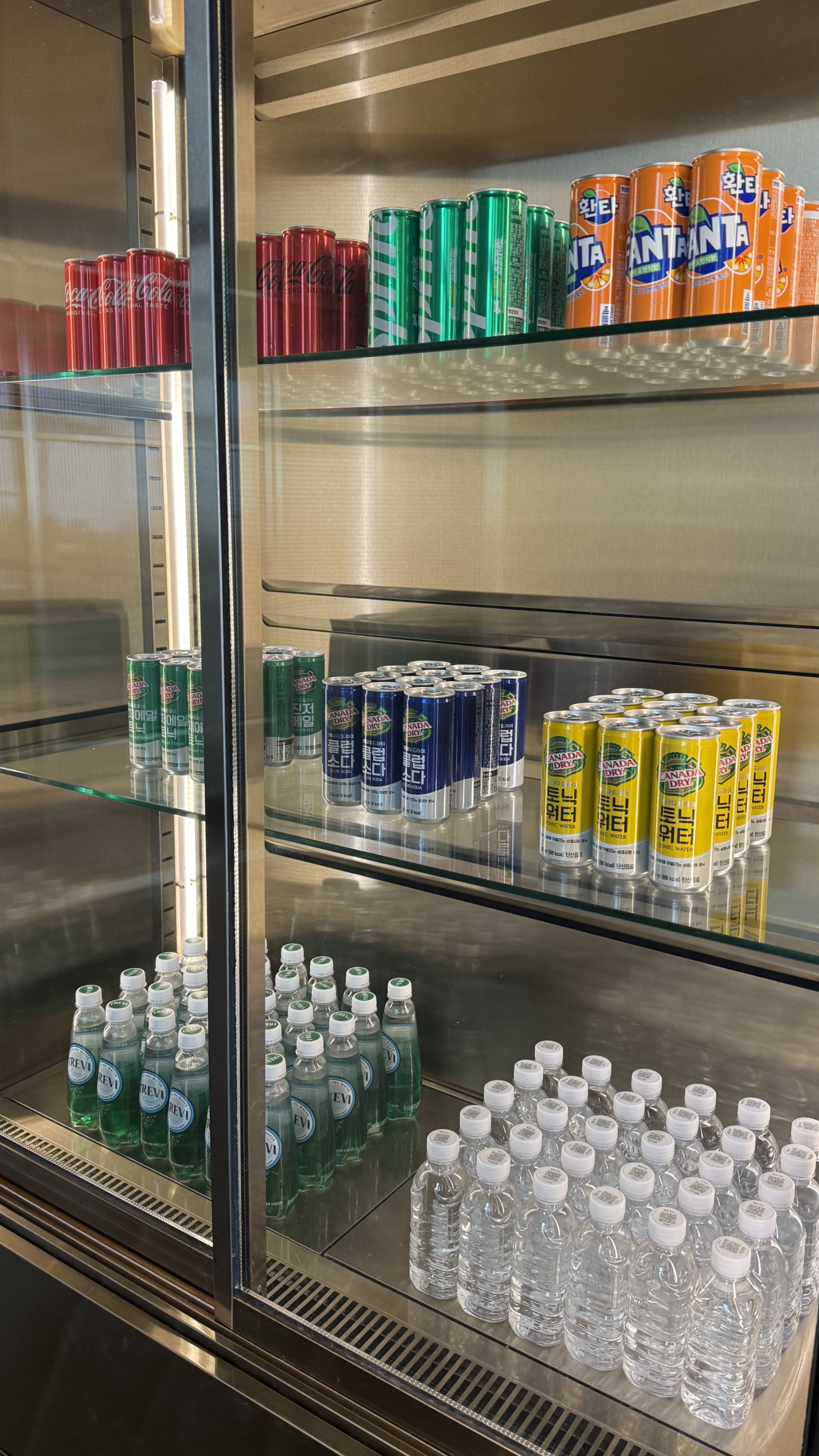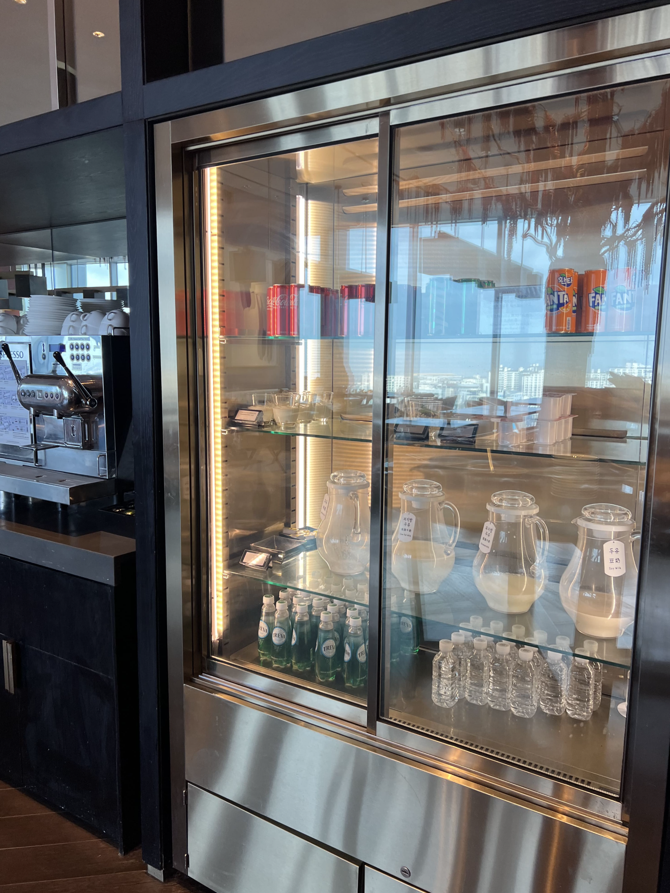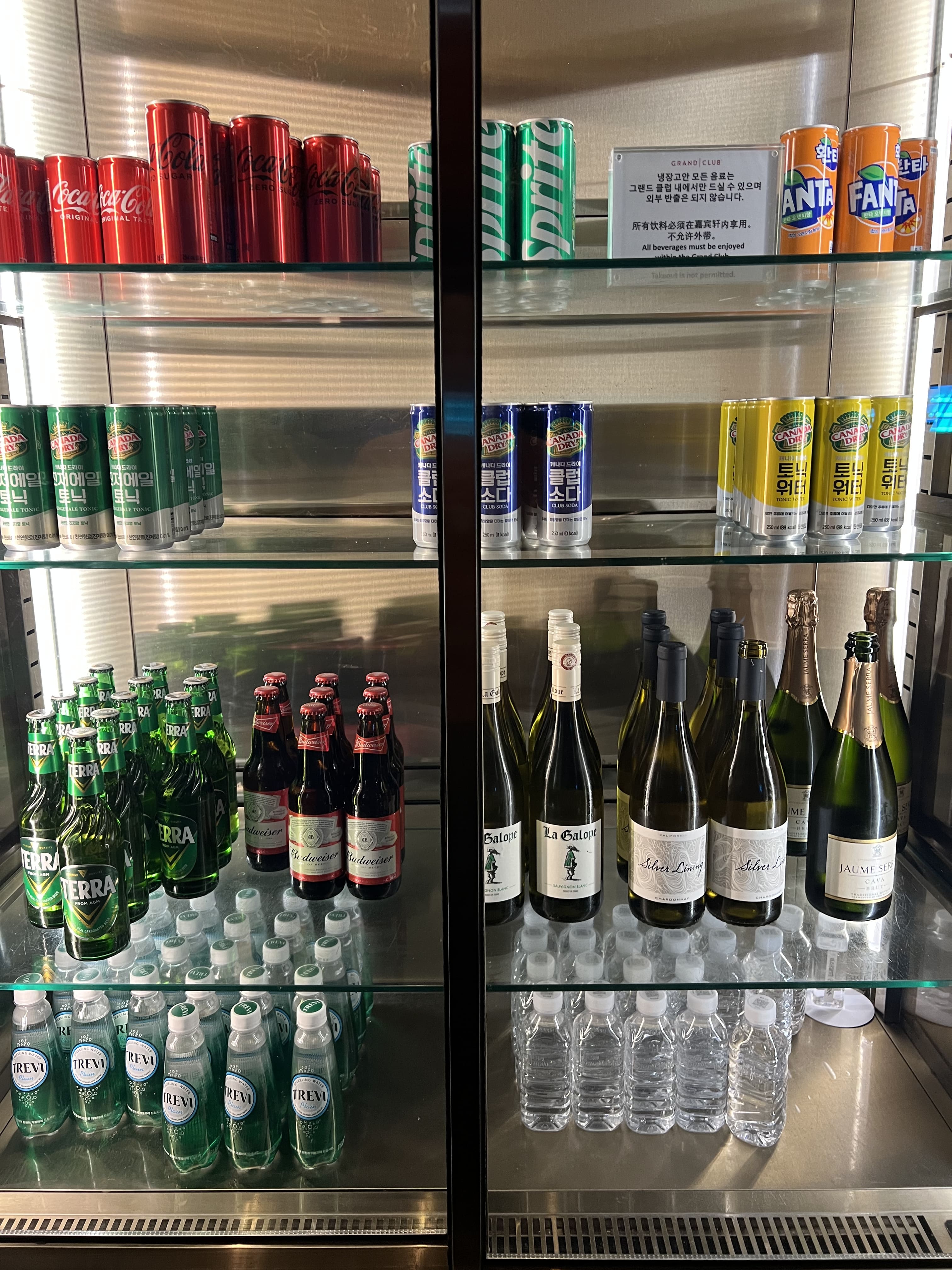 그리고 하이라이트는 저녁 5시 30분부터 7시 30분까지 제공되는 이브닝 칵테일! 샐러드, 치즈, 연어, 바삭한 치킨 등 간단한 뷔페식 음식과 함께 테라 맥주, 와인, 버드와이저 등 다양한 주류가 준비돼 있어 저녁을 간단히 해결할 수 있었습니다. 이후 7시 30분이 지나도 주류는 계속 제공돼서, 여유롭게 칵테일 한 잔 즐기며 밤을 마무리할 수 있었던 것도 만족 포인트 중 하나였어요. 라운지 공간 자체도 굉장히 세련되고 고급스러워서, 식사 외 시간에도 잠깐 앉아있기 좋은 분위기였습니다. 제주 하얏트 여행에서 라운지 경험은 정말 잊지 못할 포인트 중 하나였어요.
