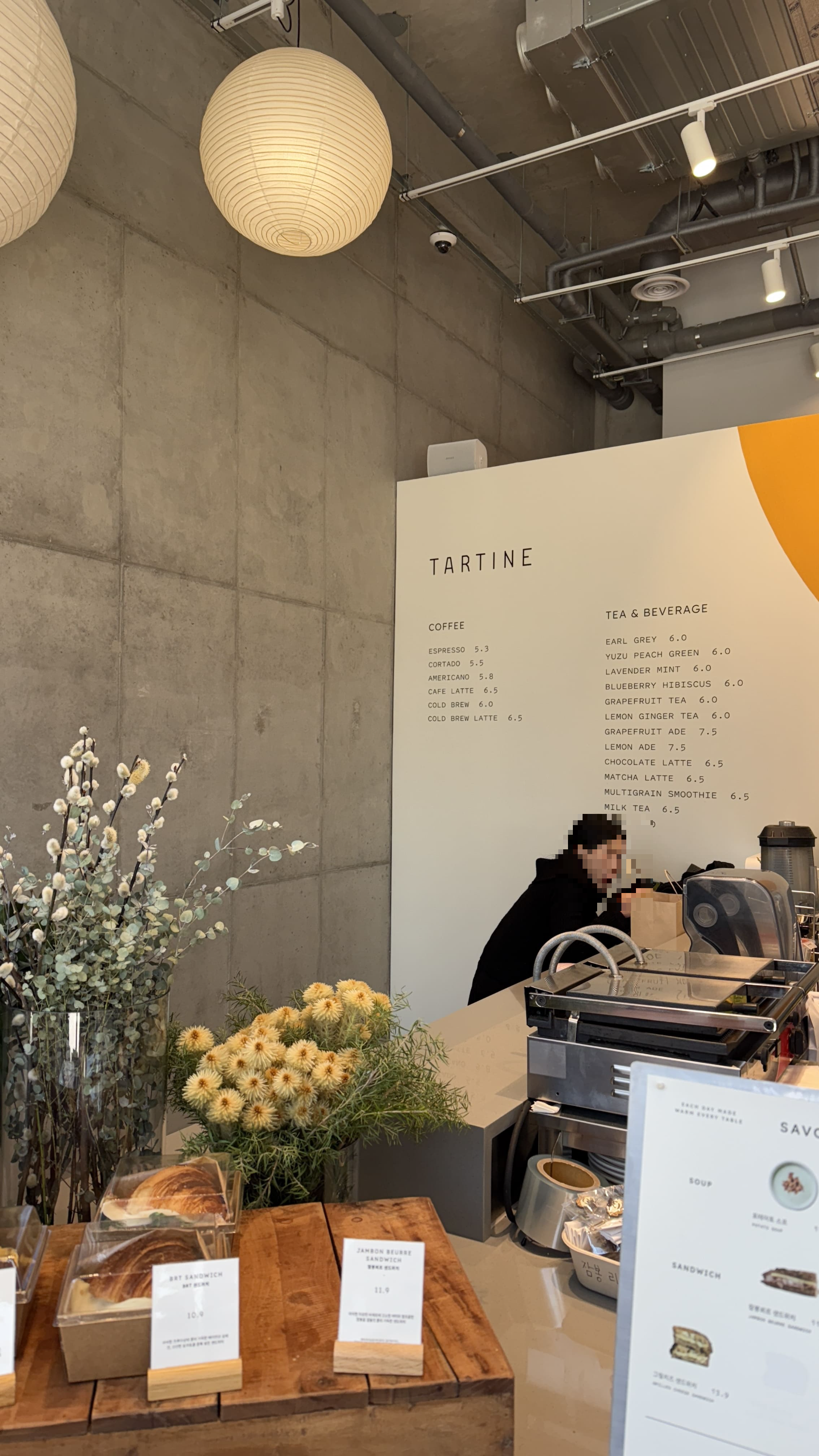 타르틴(Tartine)은 샌프란시스코에서 시작된 유명 베이커리 브랜드예요. 천연 발효종으로 만든 빵과 계절 재료를 활용한 디저트로 이미 미국에서는 ‘빵 덕후’들 사이에서 성지처럼 여겨지는 곳이죠. 청담에 생긴 이 지점은 한국에서도 그 퀄리리티를 고스란히 담아내고 있어서 더욱 만족스러웠어요.