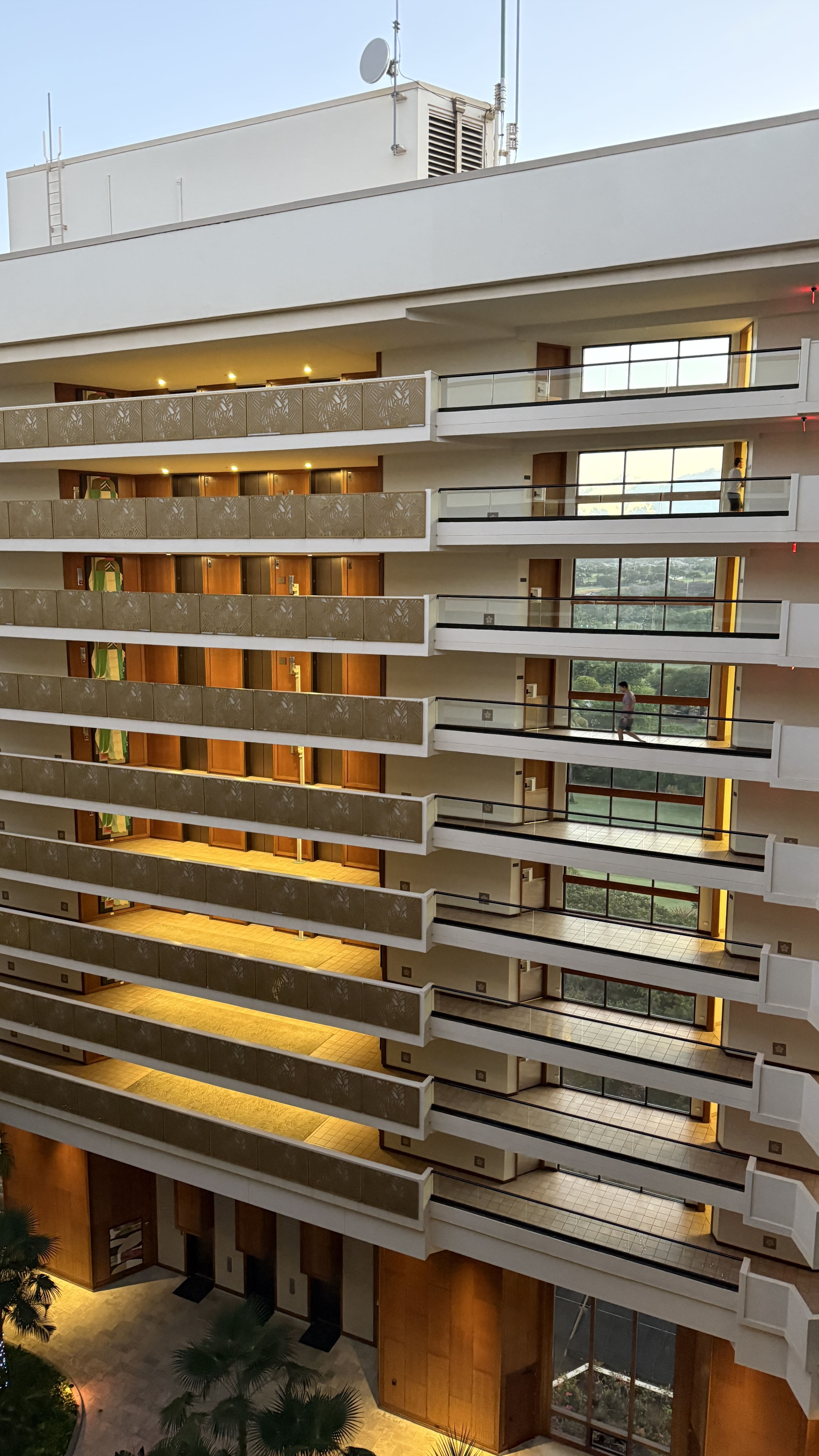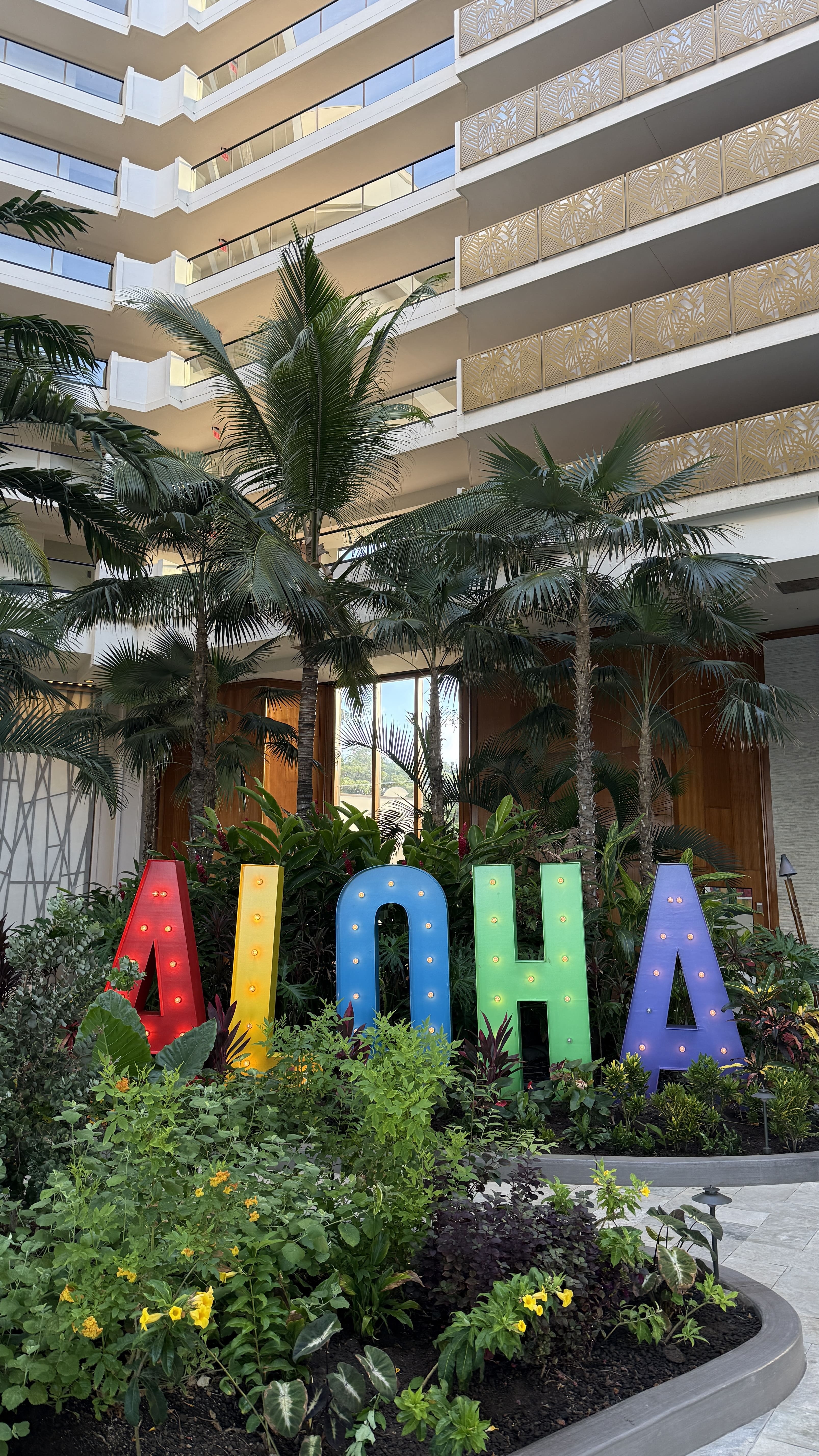 호텔에 도착하자마자 입구에서 반겨주는 “Aloha and Welcome to the Hyatt Regency Maui Resort and Spa” 문구가 여행의 시작을 설레게 했습니다. 로비는 시원하게 트여 있고, 중앙에 자리한 독특한 샹들리에가 인상적이었습니다. 체크인 과정에서도 직원들의 친절함 덕분에 기분 좋은 첫인상을 받을 수 있었습니다.