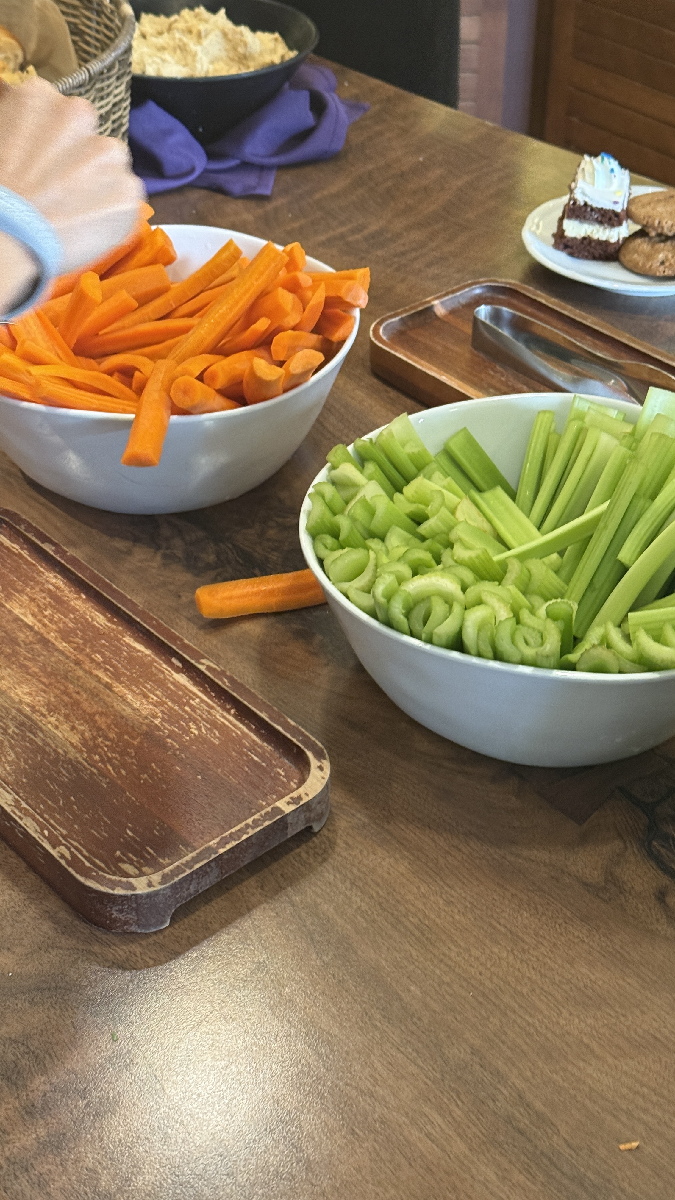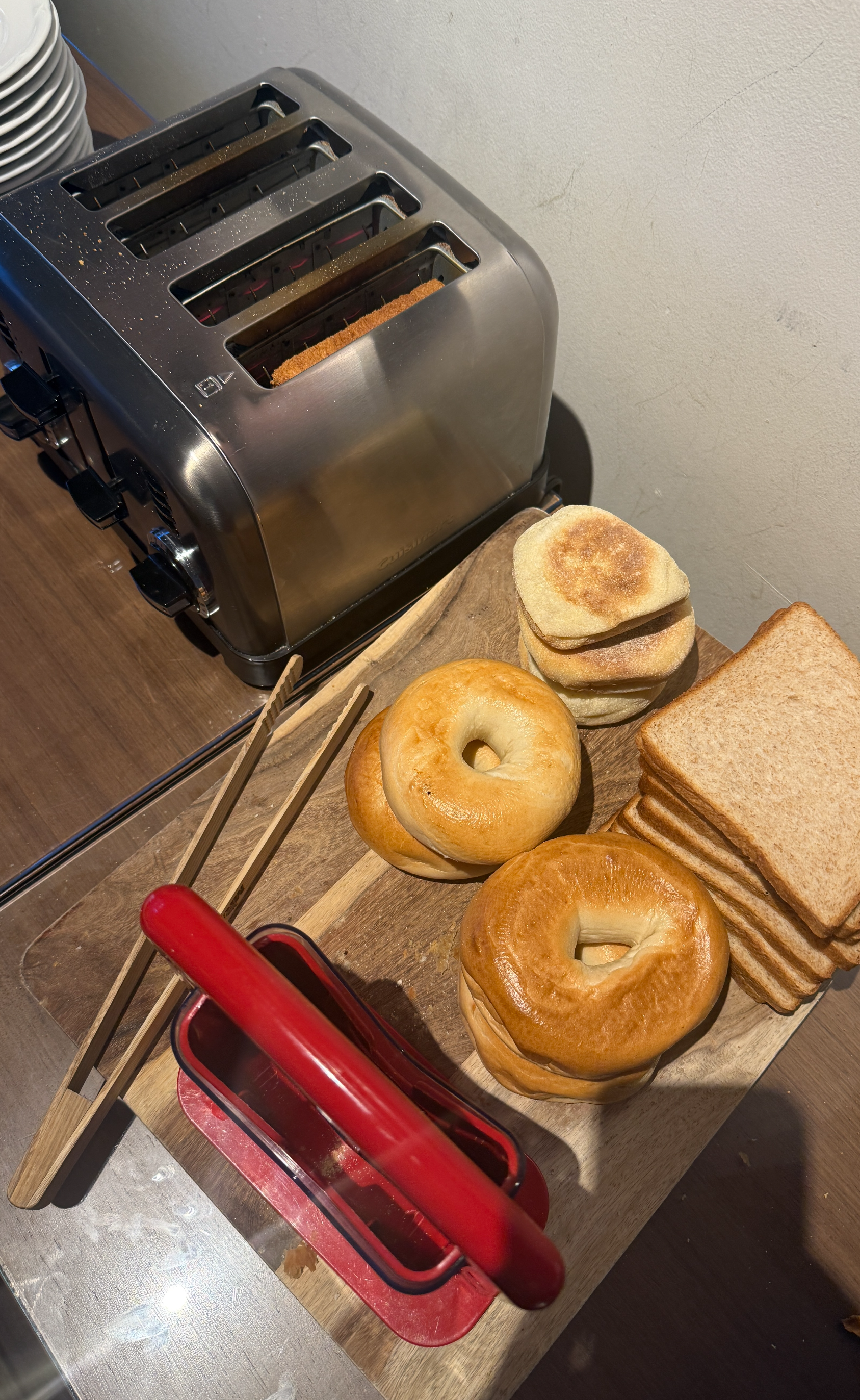 - 신선한 샐러드, 베이글과 빵, 과일, 채소 스틱 등 건강한 옵션이 풍부했습니다.