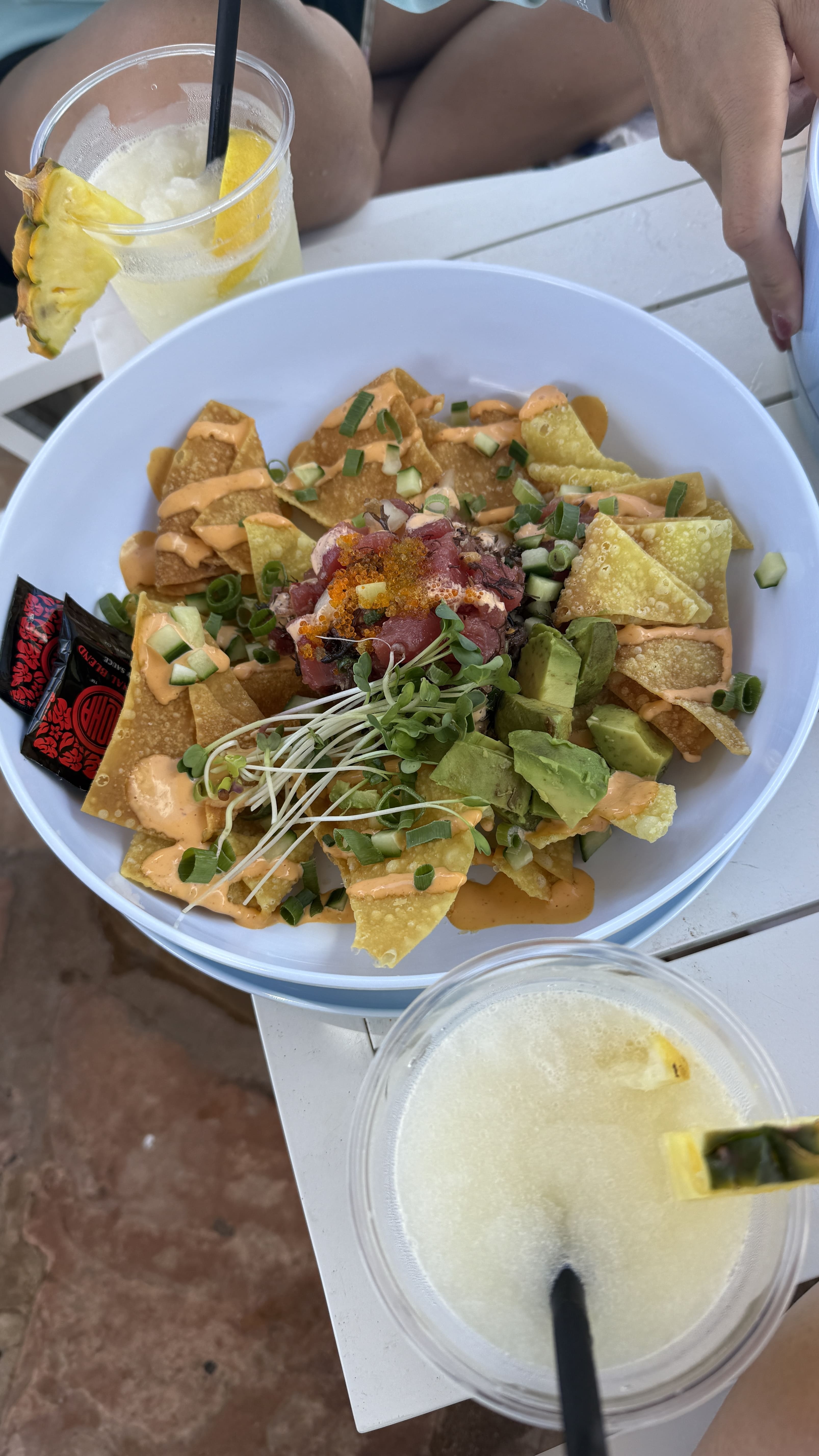- 포케 나초(Poke Nachos): 바삭한 나초 위에 신선한 포케와 아보카도, 매콤한 소스까지 곁들여져 정말 훌륭했습니다. 여행 중 먹은 음식 중 가장 기억에 남을 정도였어요.