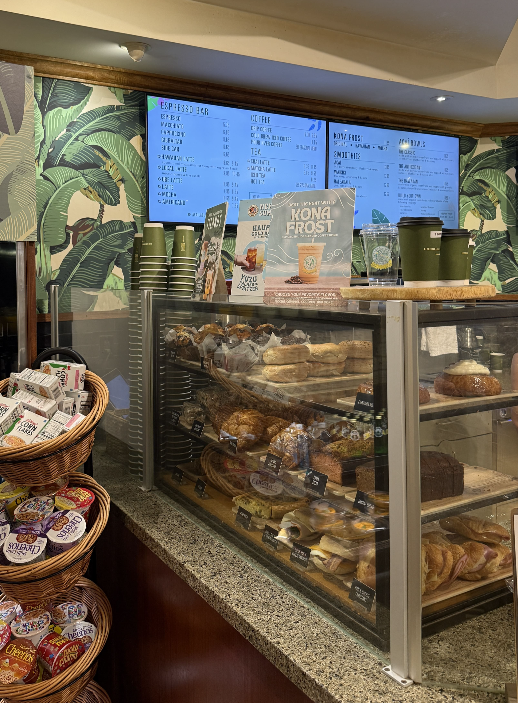 - 매장 인테리어도 하와이 감성이 물씬 풍겨, 리조트 안에서 커피 한 잔 마시는 순간마저 여행의 특별한 추억처럼 느껴졌습니다. 솔직히 가격대는 꽤 높았습니다. 커피 한 잔에 훨씬 비싸서 매번 사 마시기에는 부담이 되었지만, “여행지에서 누릴 수 있는 작은 사치”라고 생각하면 또 괜찮았습니다. 특히 새벽 산책 후에 마신 아이스라떼는 그 어느 곳보다도 맛있게 느껴졌습니다. (아메리카노 라지 $8 & 하와이안 라떼 $10)
