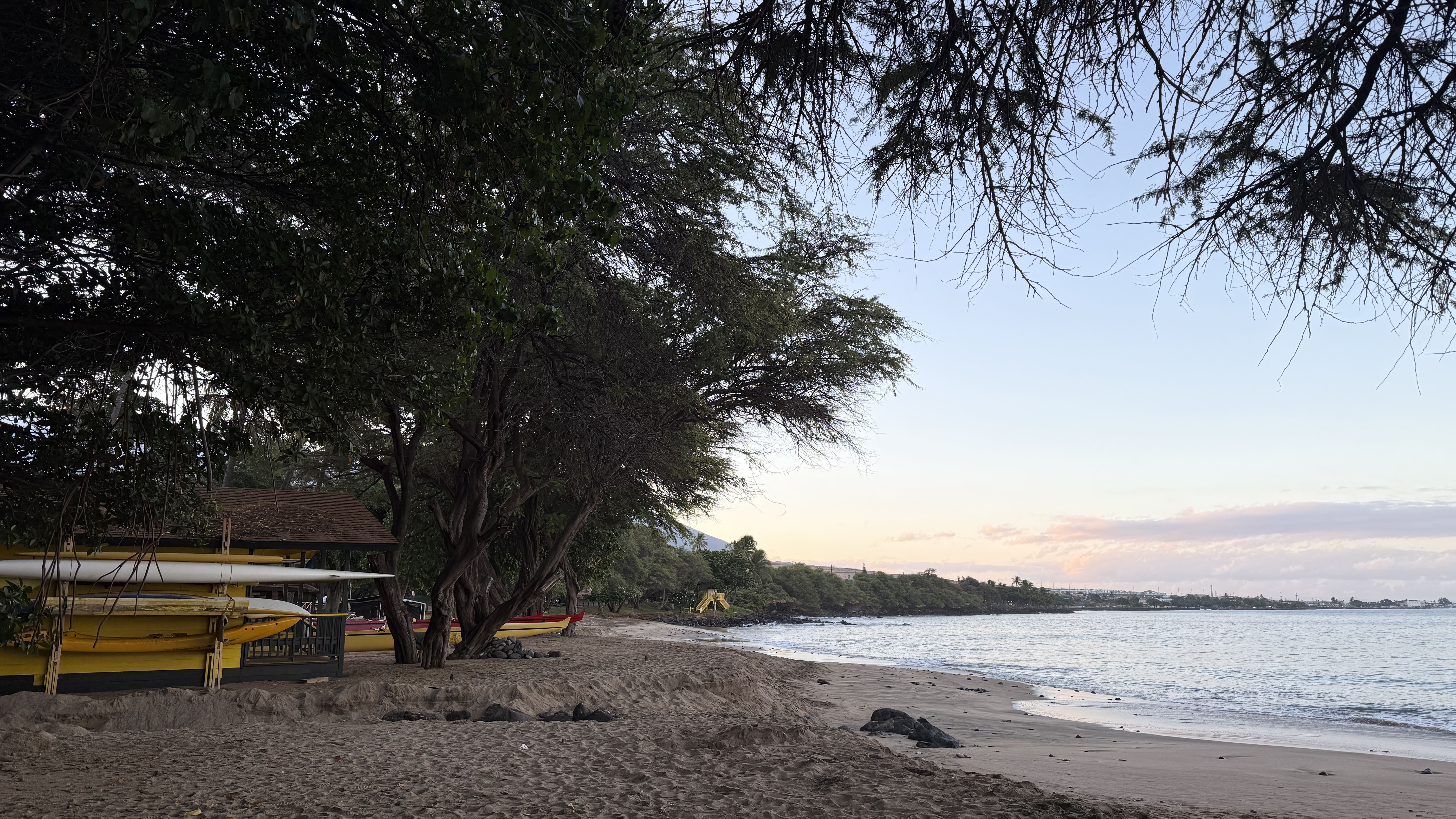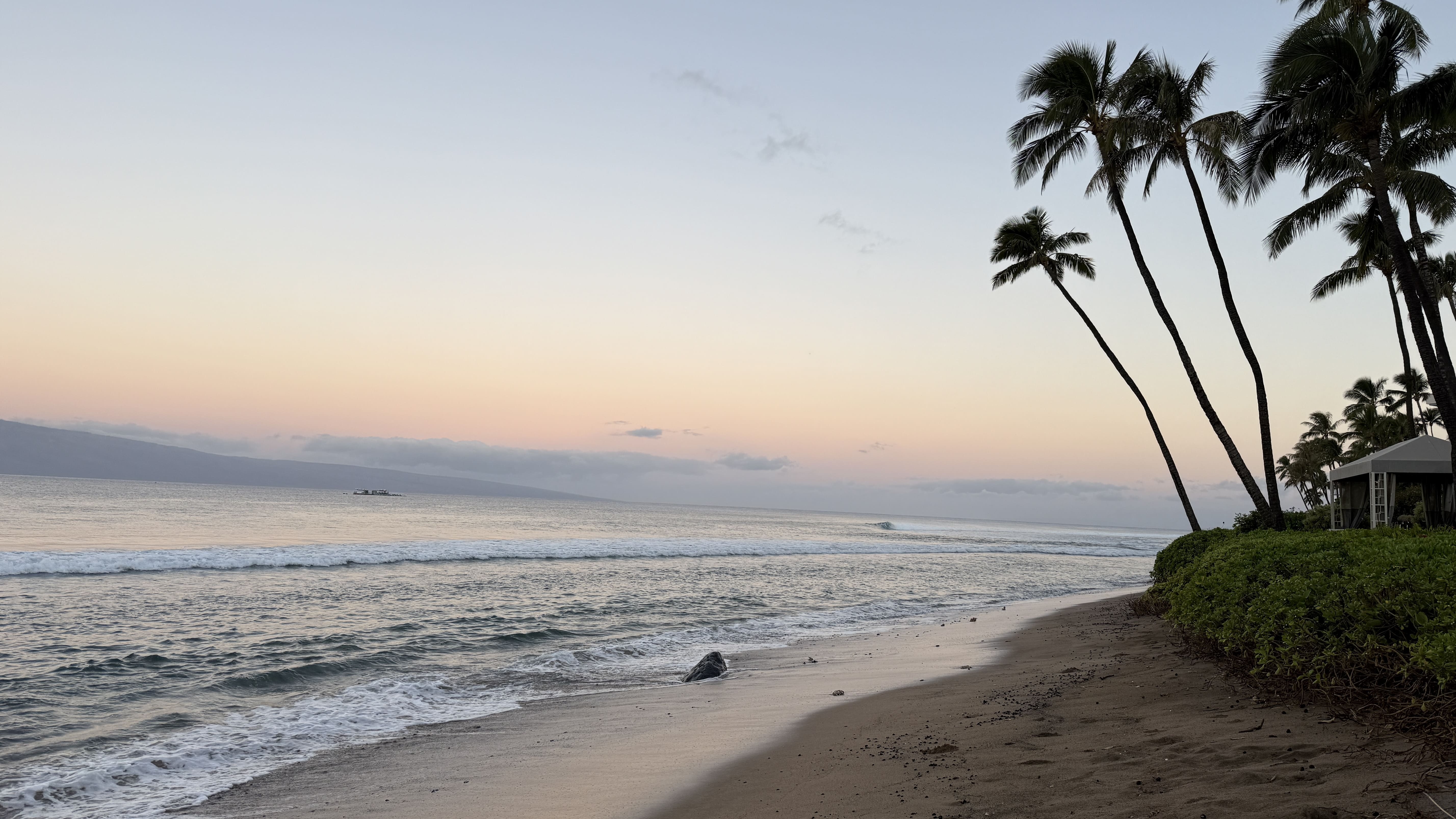 리조트와 연결된 카아나팔리 해변으로 걸어 나갔습니다. 이른 아침의 바다는 낮과는 또 다른 고요한 풍경을 보여주었습니다.