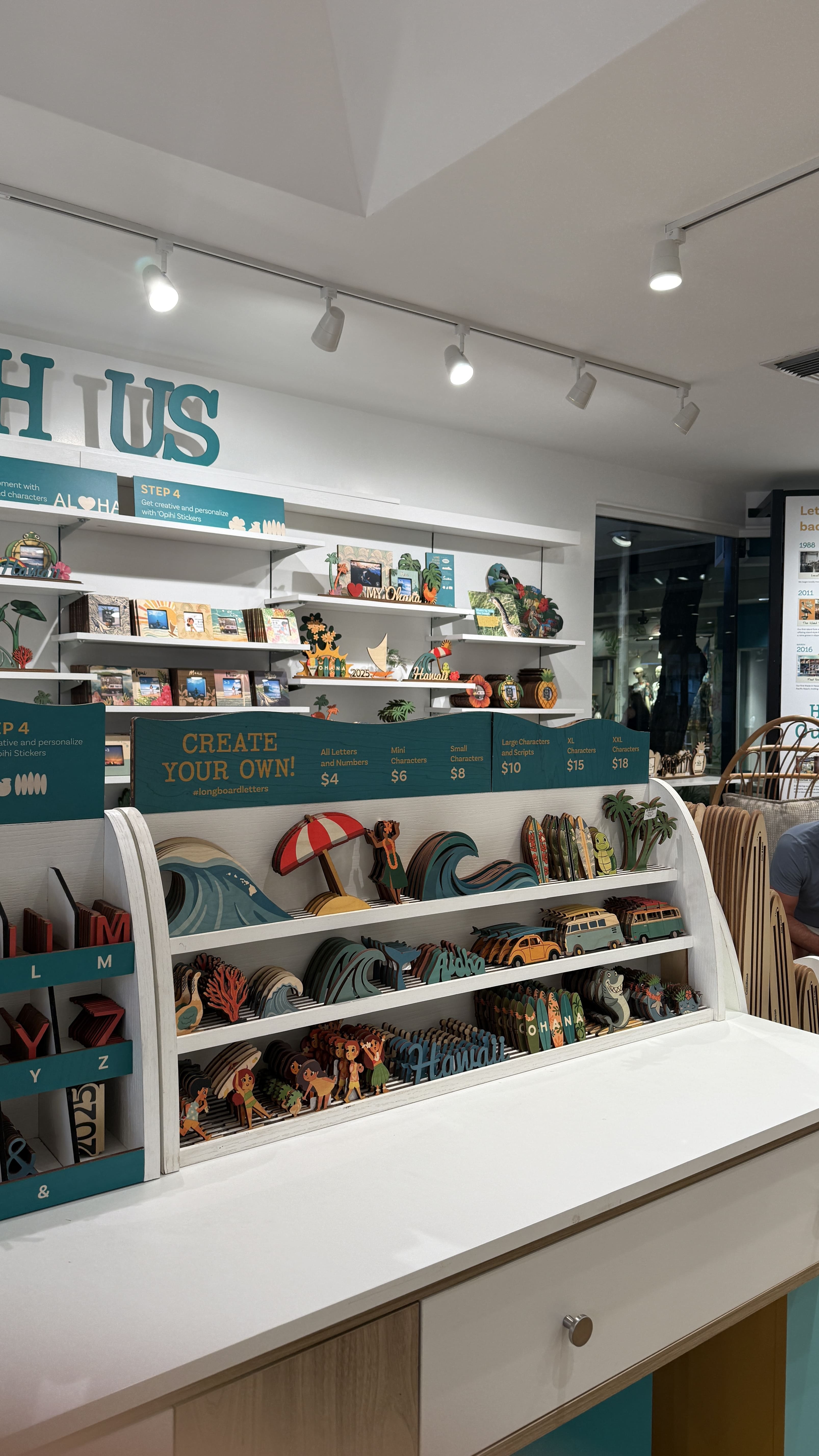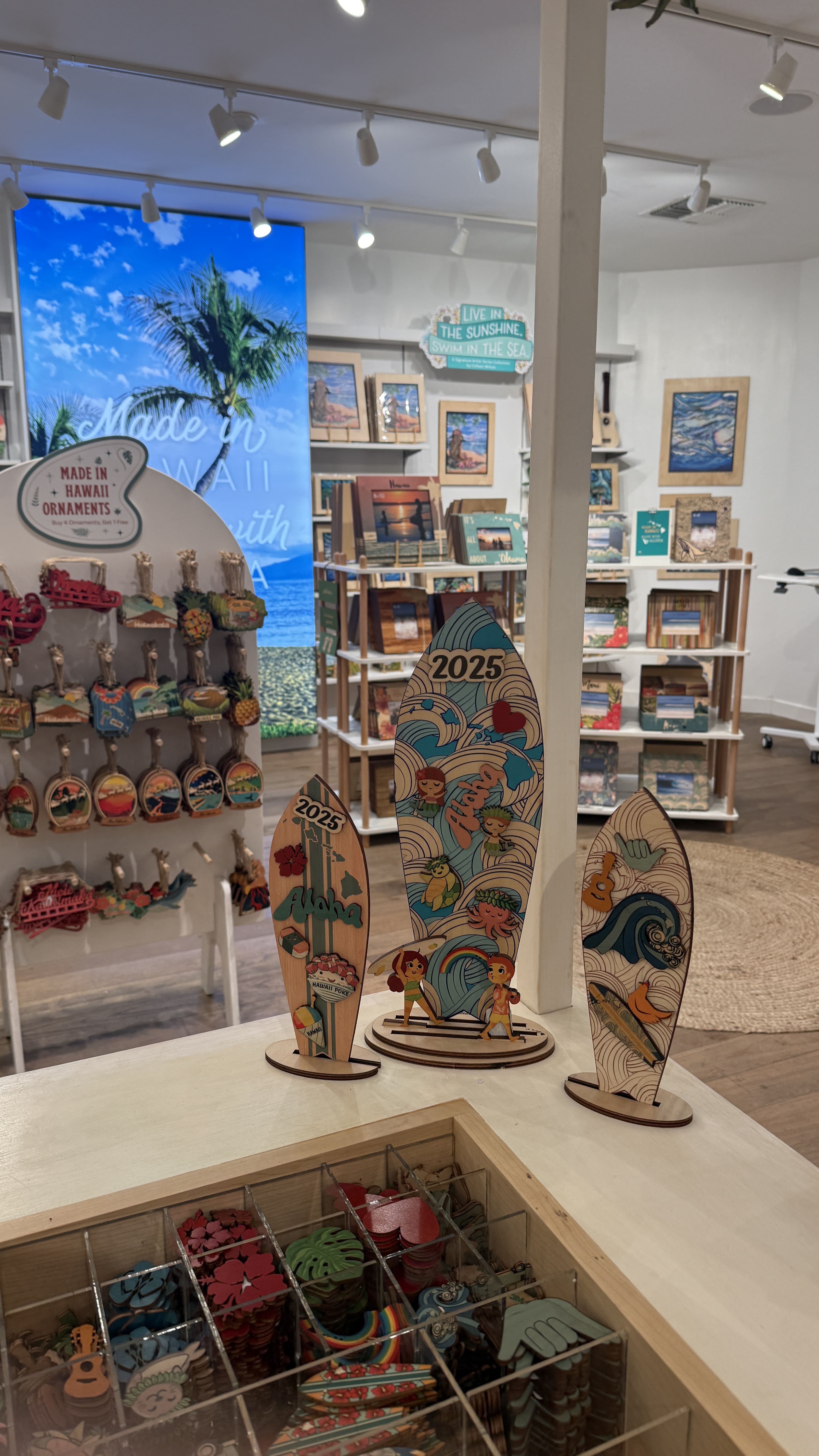 - 코코 노네(CocoNene): 하와이 감성을 듬뿍 담은 기념품숍으로, 아기자기한 소품들이 눈길을 끌었습니다. ‘Create Your Own’ 코너에서 직접 기념품을 제작할 수 있어 특별한 추억을 남기기 좋았습니다. 특히 2025년 날짜가 새겨진 서핑보드 오너먼트는 이번 여행의 기념품으로 딱이었습니다.