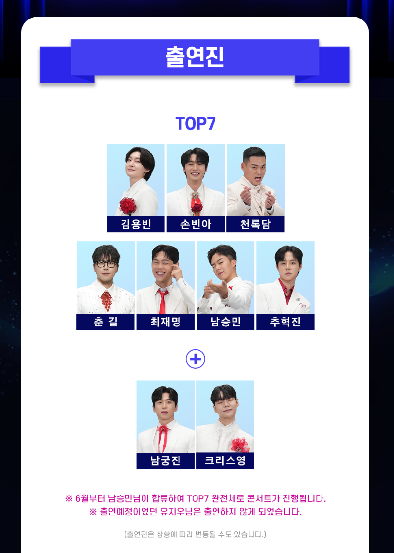 출연진: 김용빈, 손빈아, 천록담, 춘길, 최재명, 남승민, 추혁진 (※ 남궁진, 크리스영 일부 일정 참여 가능)