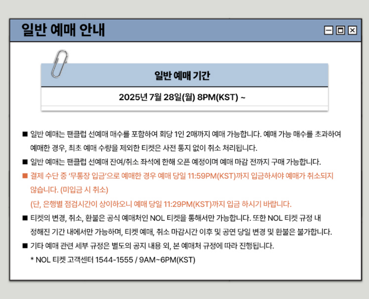공연 당일에는 매우 혼잡할 수 있어 공연 시작 1시간 전까지 도착 추천