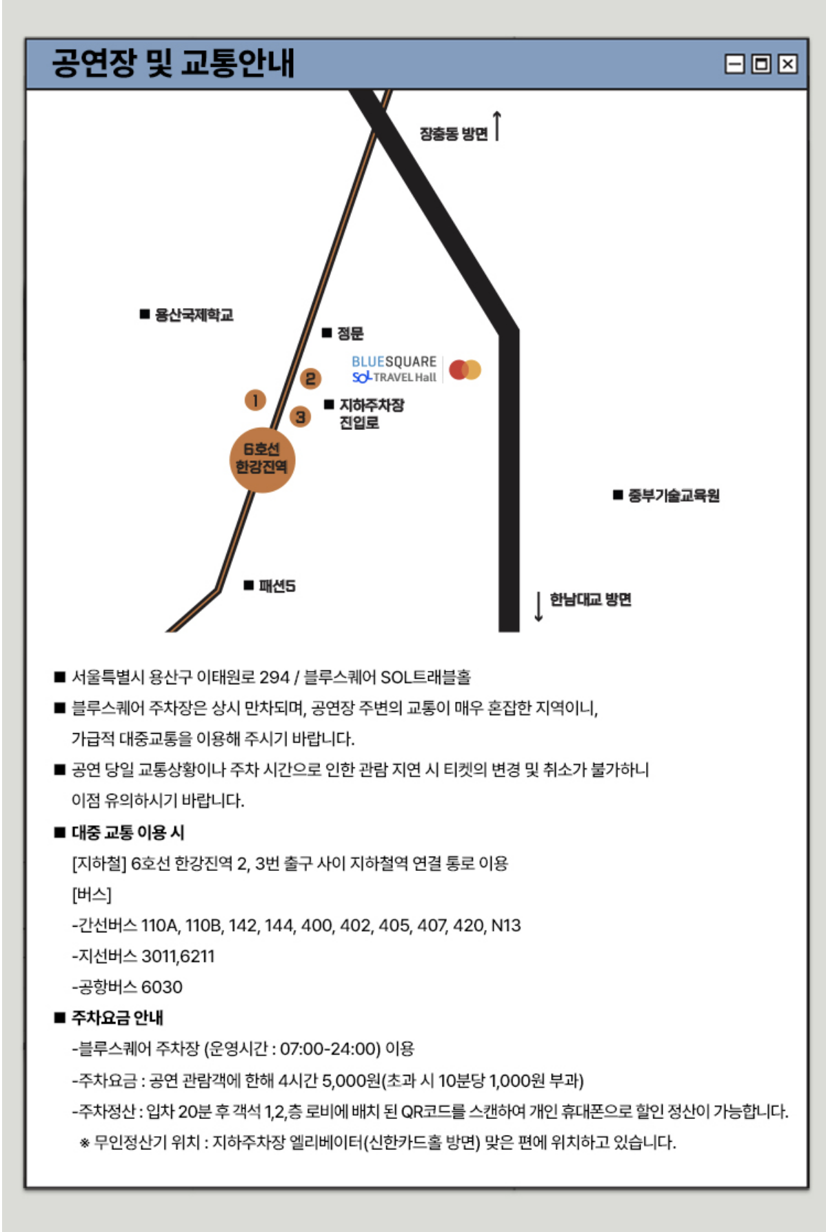 🚗 블루스퀘어 SOL트래블홀 주차 정보