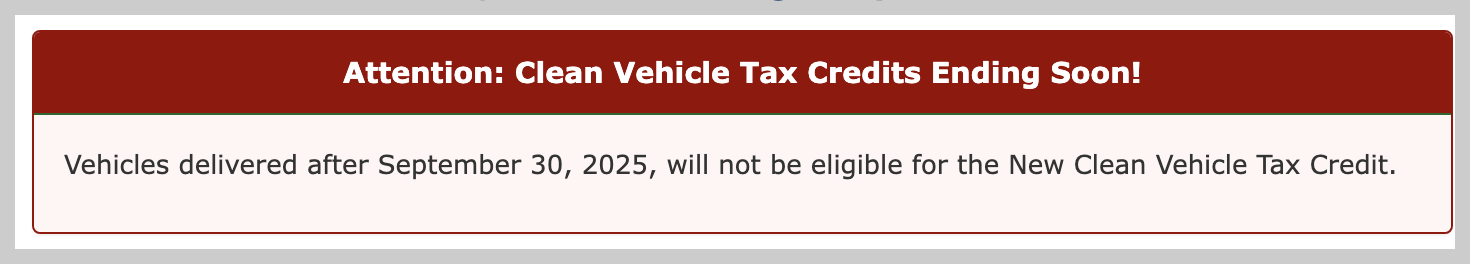 | 2025년 9월 30일까지 | 최대 $7,500 | 세단 $55,000, SUV/트럭 $80,000 이하 | 약 25개 차종 |