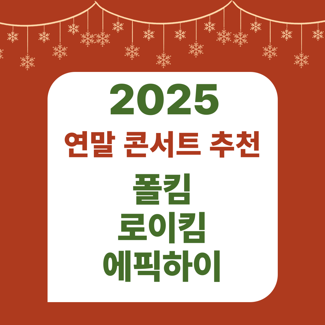 벌써 몇달있으면 연말이 다가오네요! 2025년 겨울, 꼭 가보고 싶은 연말 콘서트 추천 3선 — 폴킴, 로이킴, 에픽하이 콘서트 일정을 정리해봤습니다. 연말 콘서트는 매진이 빠르니 미리 준비하세요!
