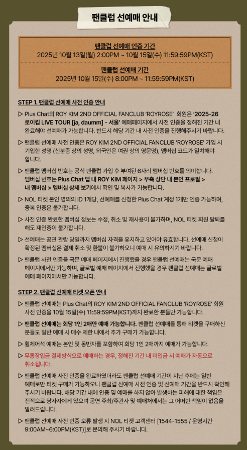 * 이번 공연은 NOL 티켓 단독 판매로 진행되며, 예매 대행이나 양도, 비공식 경로 구매는 모두 금지되어 있습니다.