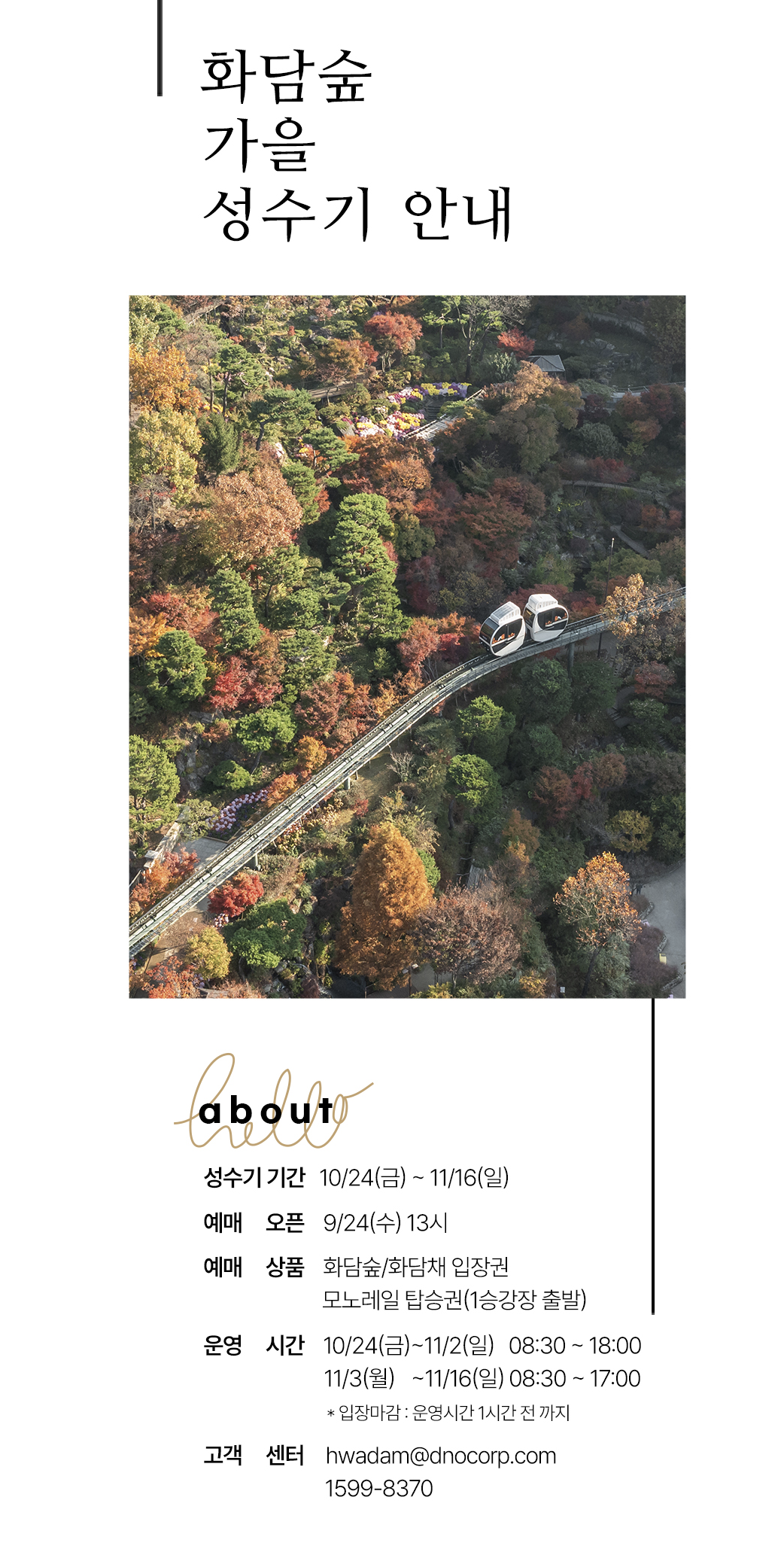 - 예약 가능 상품: 화담숲/화담채 입장권, 모노레일(1승강장 출발)