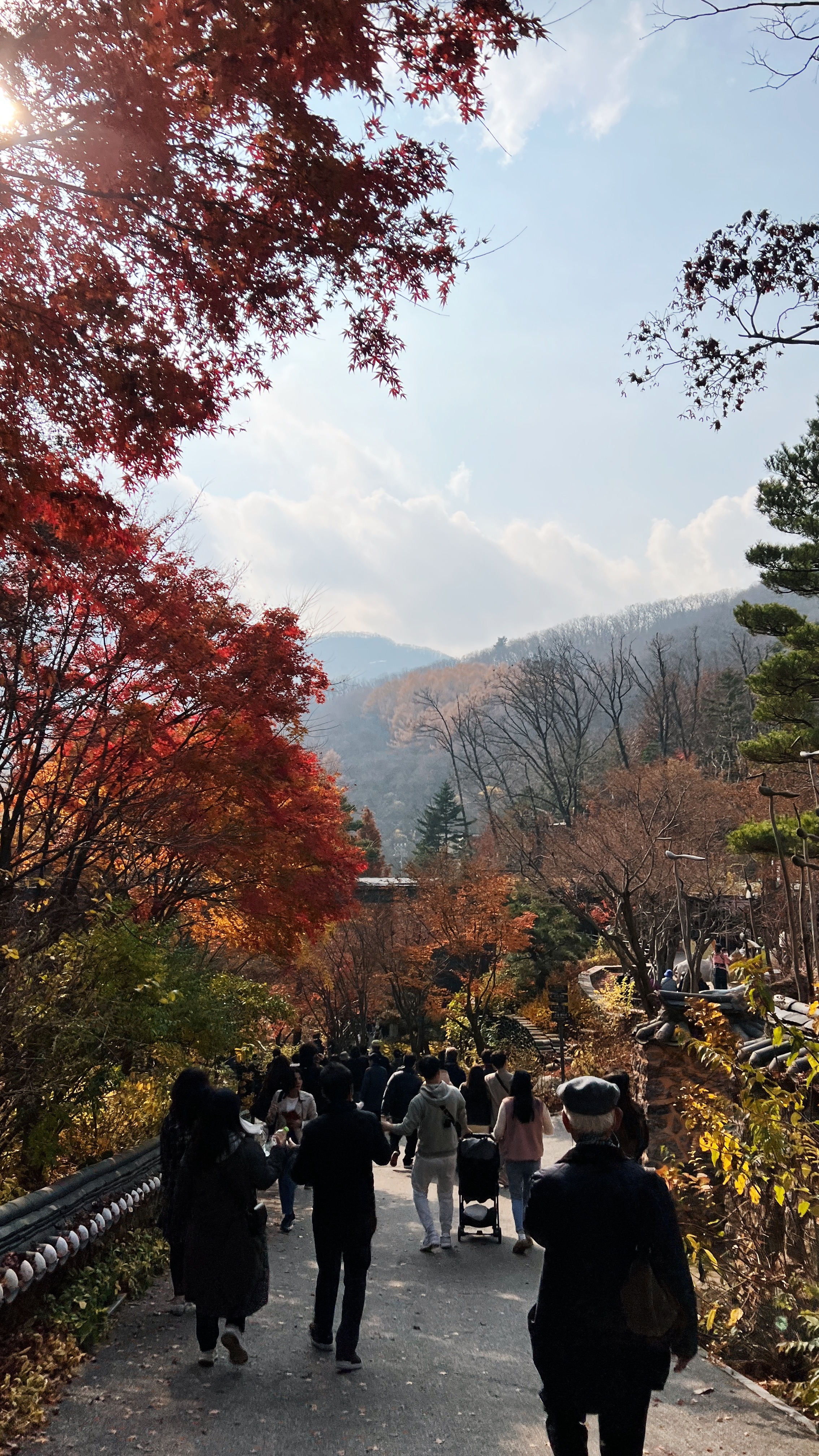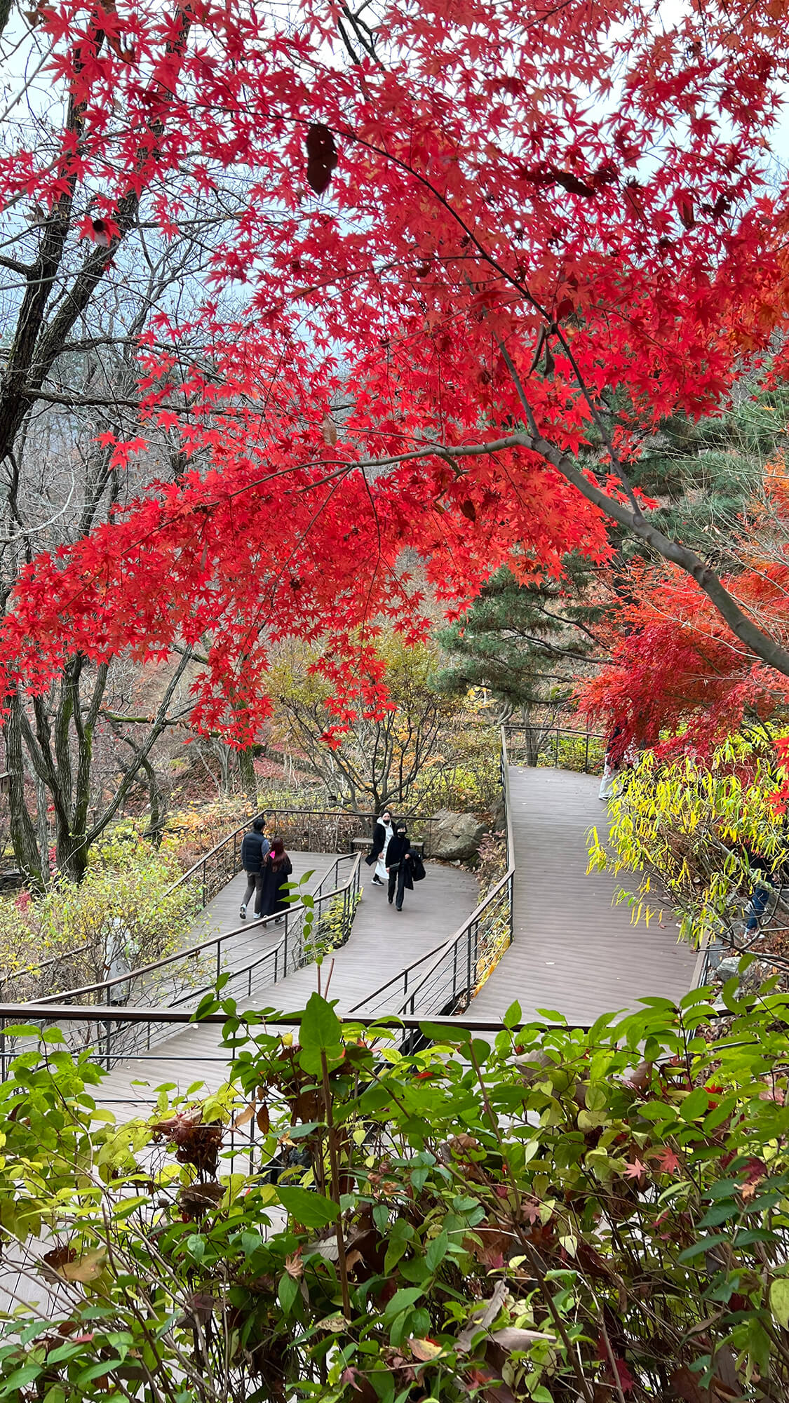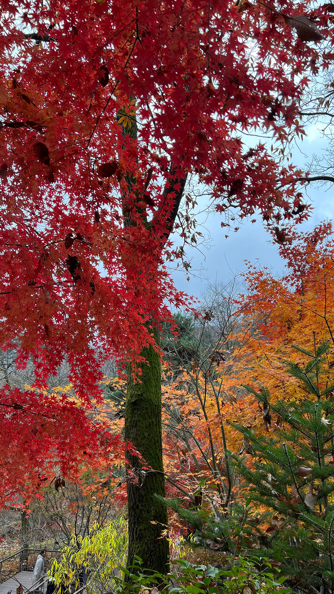 ‘정을 나누는 숲’이라는 이름답게 화담숲은 인위적인 조경을 최소화해 계절마다 색다른 풍경을 보여줍니다. 특히 가을에는 붉게 물든 단풍과 노란 은행잎, 초록 소나무가 어우러져 마치 동화 속에 들어온 듯한 풍경을 선사하죠. 산책로를 따라 걷다 보면 작은 폭포와 연못, 계절별 식물들이 이어져, 발걸음을 멈출 때마다 새로운 장면이 펼쳐집니다. 제가 간 시기는 12월14일 이었습니다. 더 일찍 가시는 걸 추천합니다!
