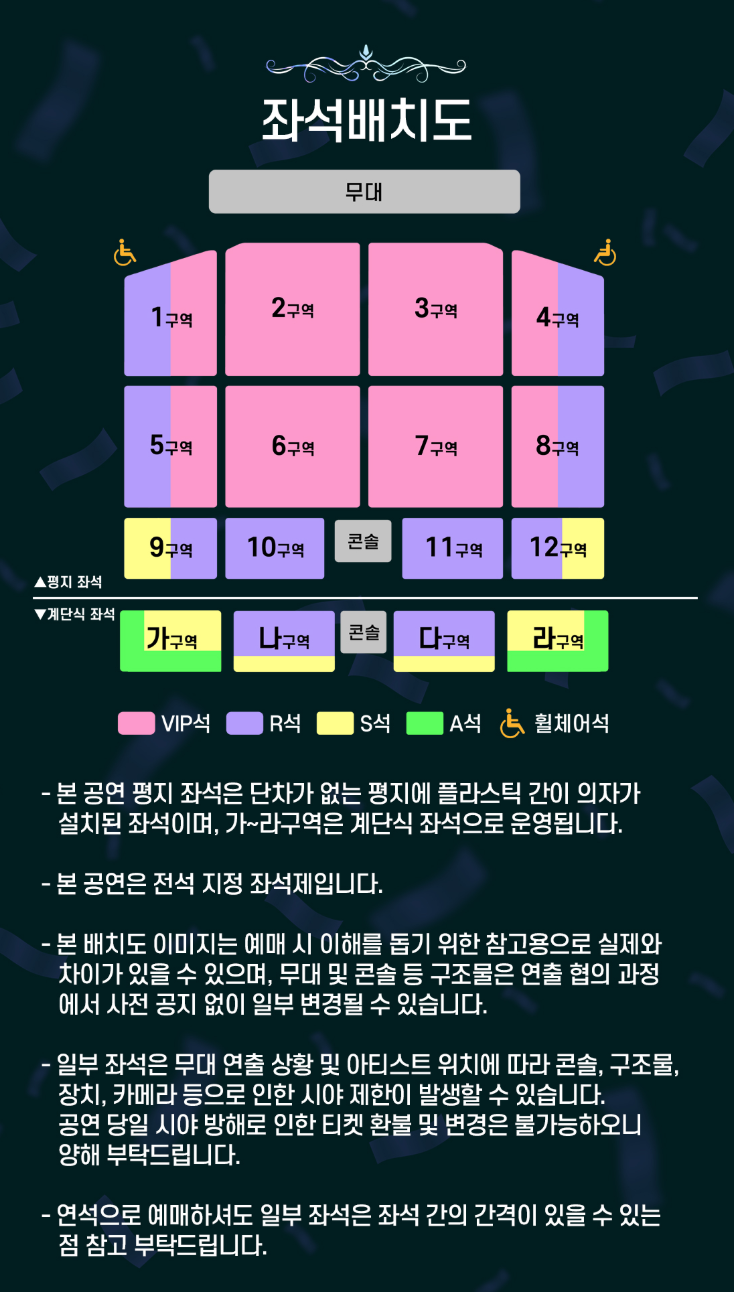 - 예매 시 좌석 등급별 가격 차이가 크므로, 공연장 구조를 미리 확인해두면 좋습니다!